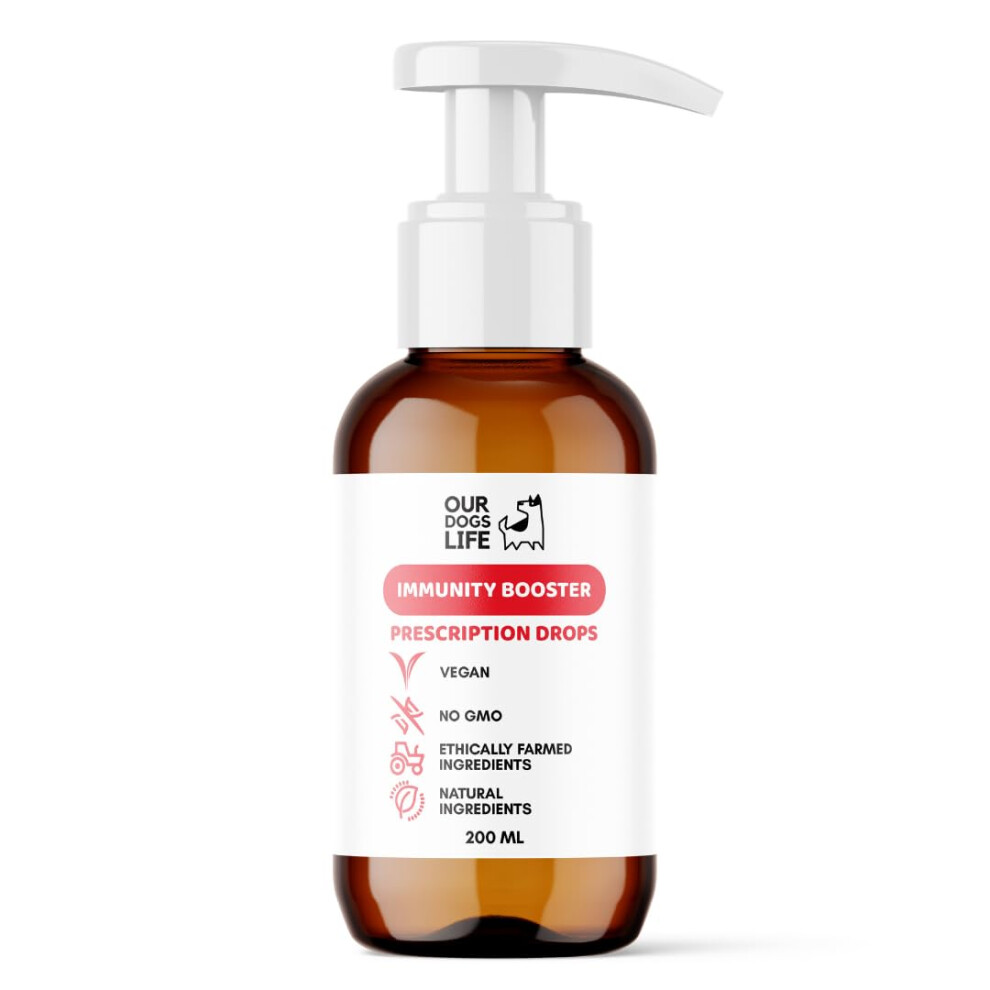 Immunity Booster Drops for Dogs - Vegan Formula with Dog Vitamins, Antioxidants, and Mushroom Blend for Liver Detox & Anti-Inflammatory Support- 200ml