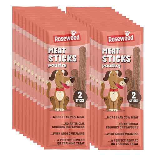 Rosewood Meat Sticks for Dogs - Made with Poultry and Added Vitamins - No Artificial Colours or Flavours - No Added Sugar - Soft, Chewy Dog Treat Sticks for Training (Case of 20 x 24g)