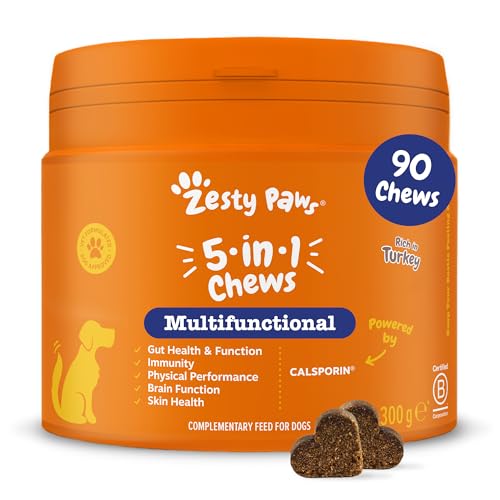 Zesty Paws 5-in-1 Multivitamin Chews for Dogs | supports digestion, skin, brain, immune system and muscle health | daily wellness supplement for all breeds | Dog vitamins | 90 soft chews