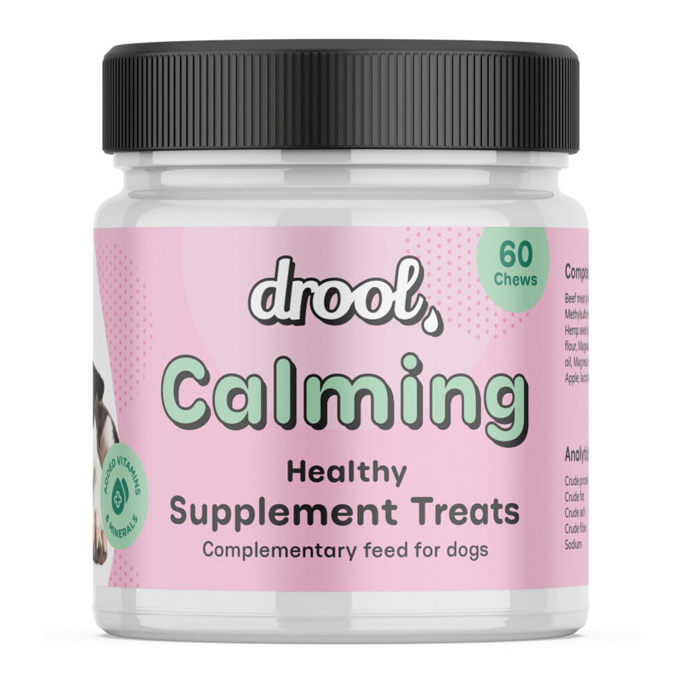 Drool Pet Products | Calming Treats For Dogs | Healthy Supplement | Dog Vitamins | Reduce Stress And Anxiety For Dogs | Beef Chewy | 180g Pack of 60