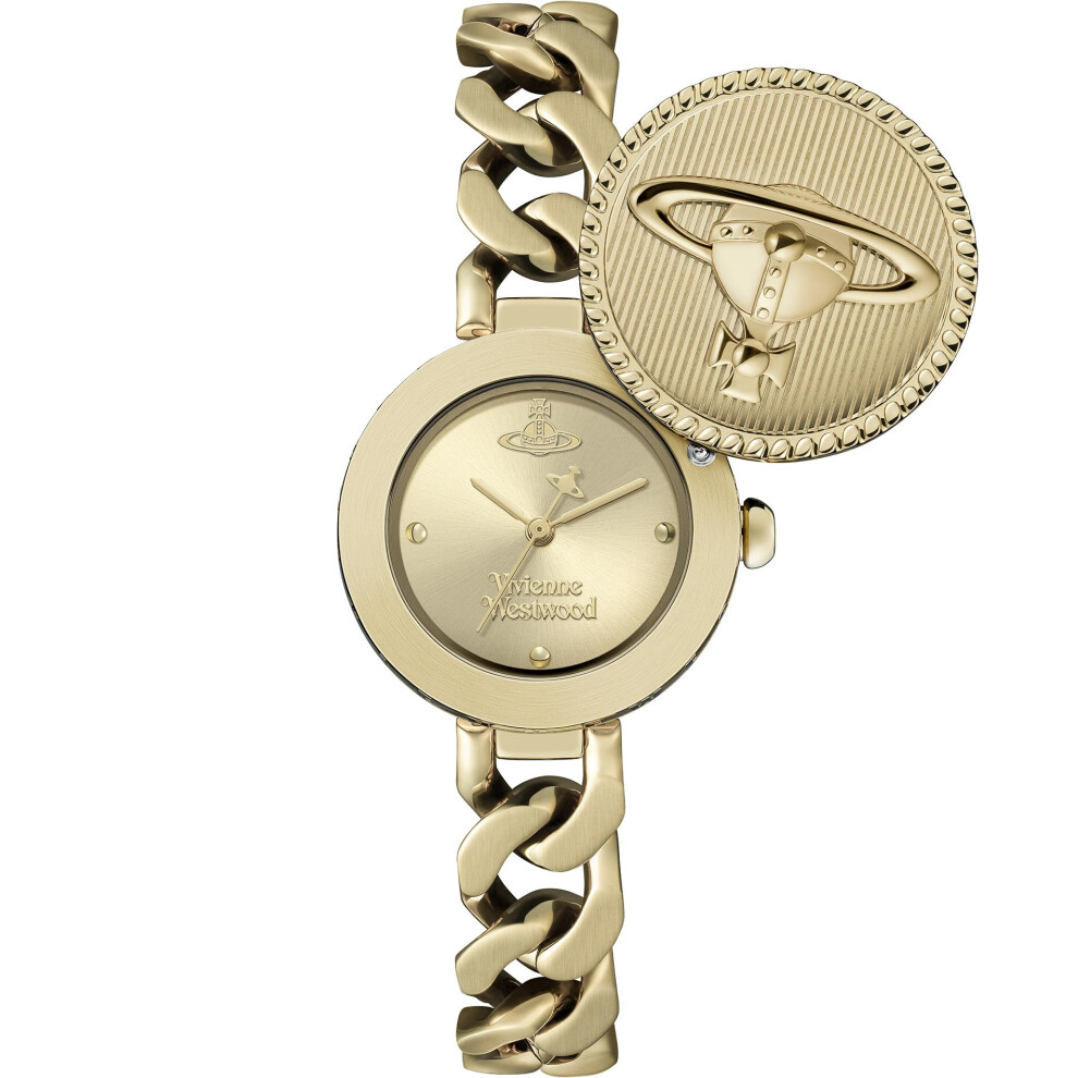 Vivienne Westwood Orb Button 25.4mm Ladies Quartz Watch with Gold Dial, Stainless Steel Gold Case & Link Chain Bracelet