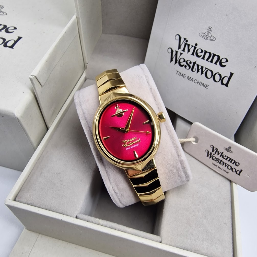 Vivienne Westwood Lady Sydenham Ladies Quartz Watch with Rhod Red Dial & Gold Stainless Steel Bracelet