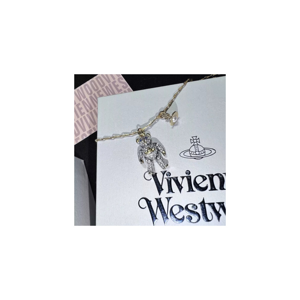 Vivienne Westwood bling teddy bear necklace pendant with boxA48