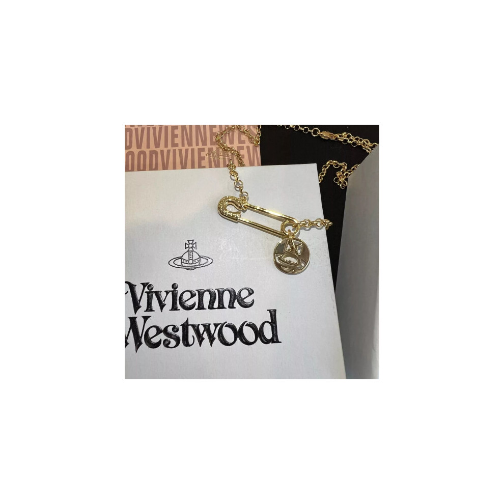 Vivienne Westwood Classic Hollow Safety Pin Pendant Necklace Gold Tone B23