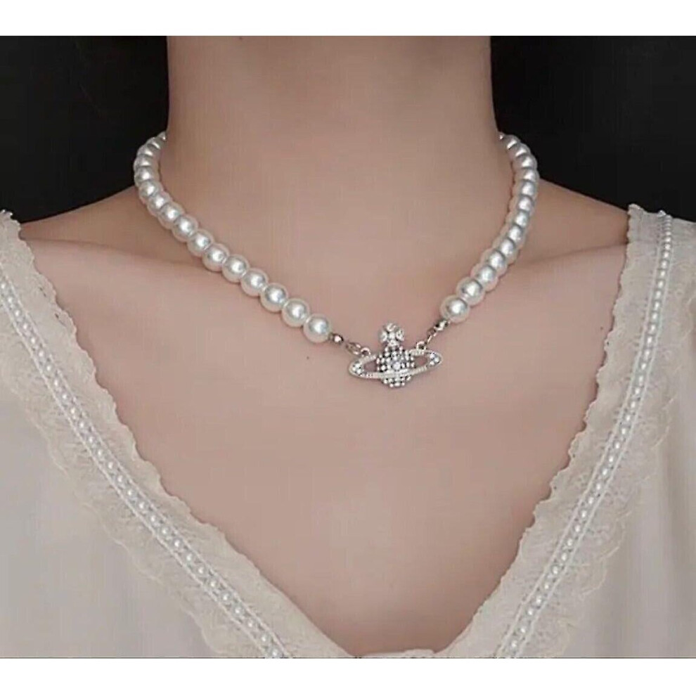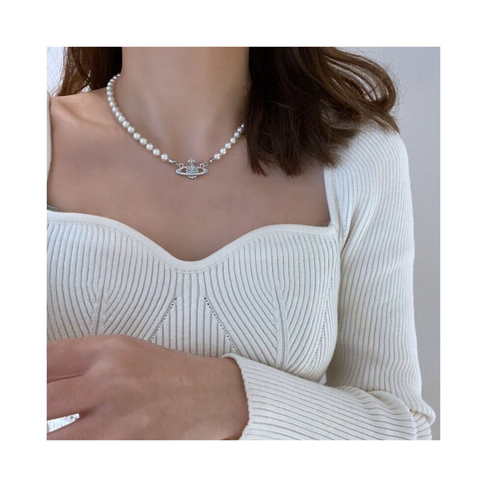 (Silver) Vivienne Westwood Necklace Mini Bas Relief Pearl