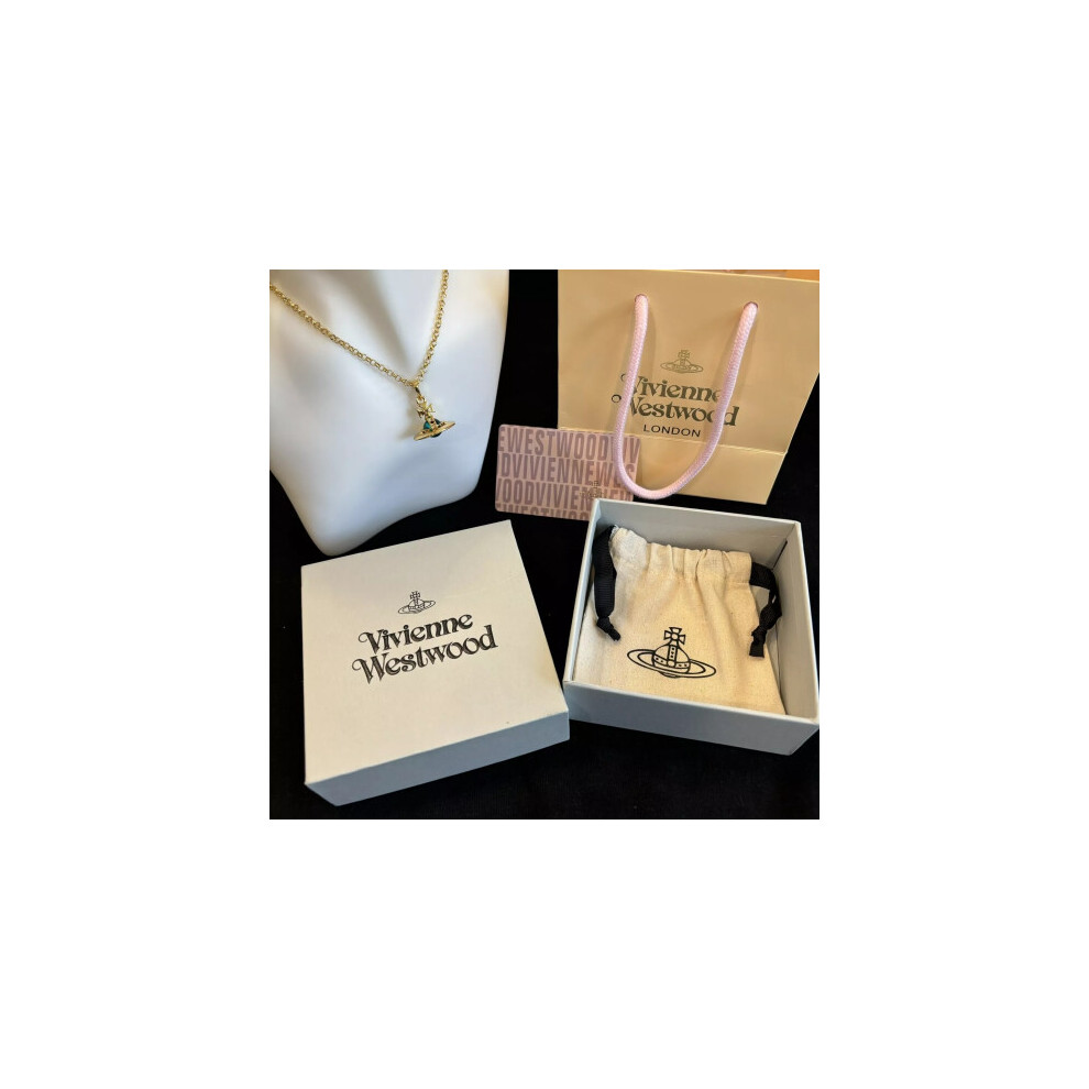 Vivienne Westwood Safety Pin Orb Saturn Classic Necklace Gold Tone in box 262