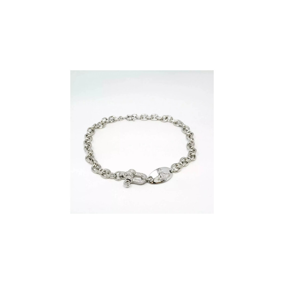Vivienne Westwood Necklace Silver Tone White Crystal Lock Chain Chocker Box Set