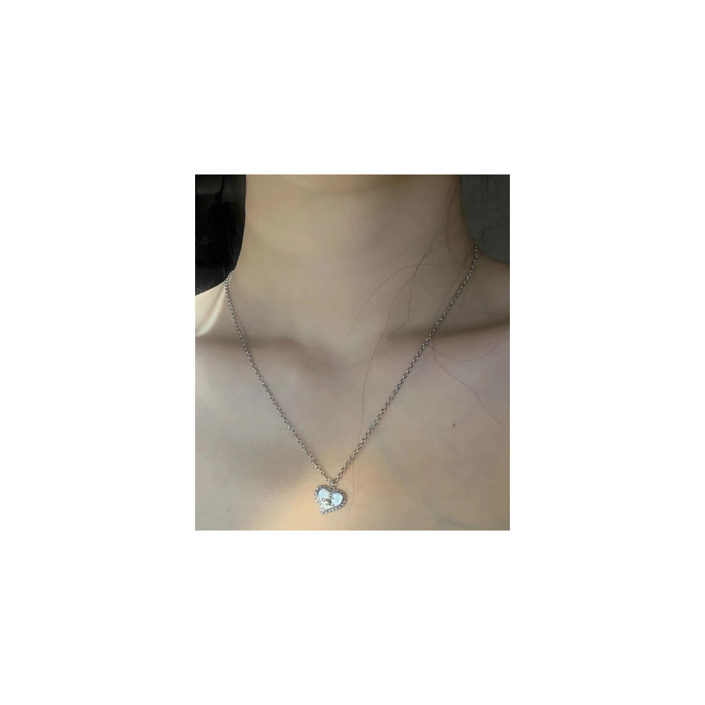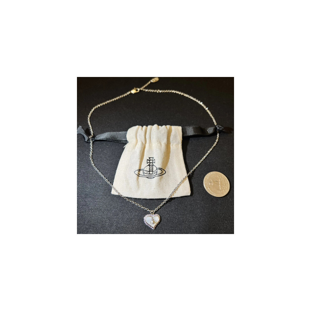 Vivienne westwood Nana White Mother Pearl heart w/ Purple Crystal necklace #001