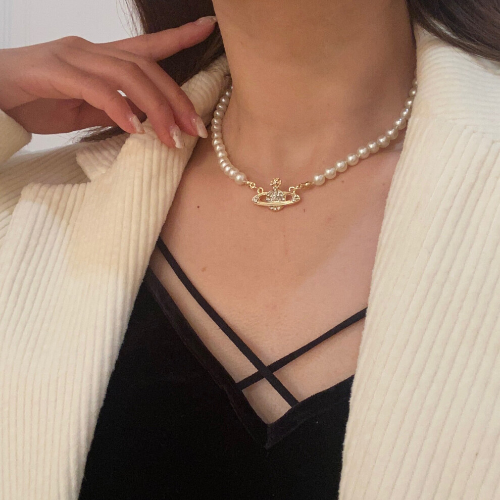 (Gold) Vivienne Westwood Necklace Mini Bas Relief Pearl