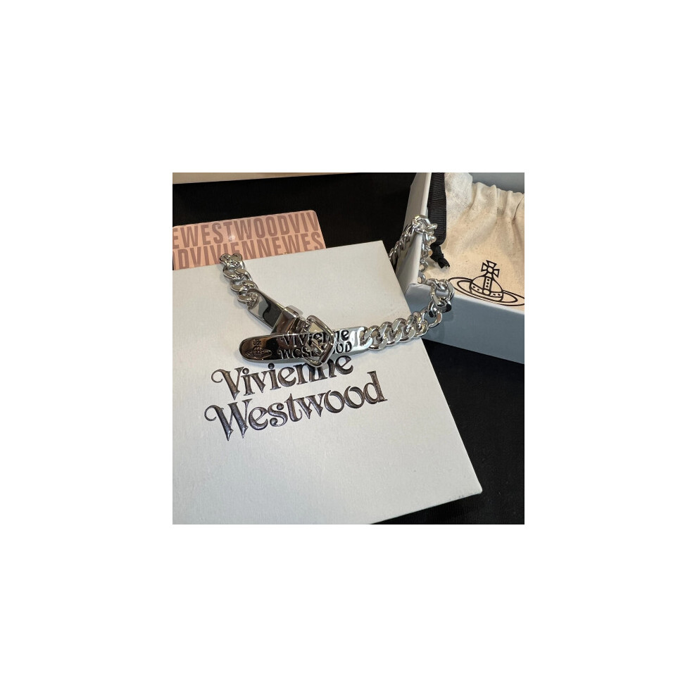 Vivienne Westwood Punk Hip Hop Belt Silver Necklace Chocker With Box 117