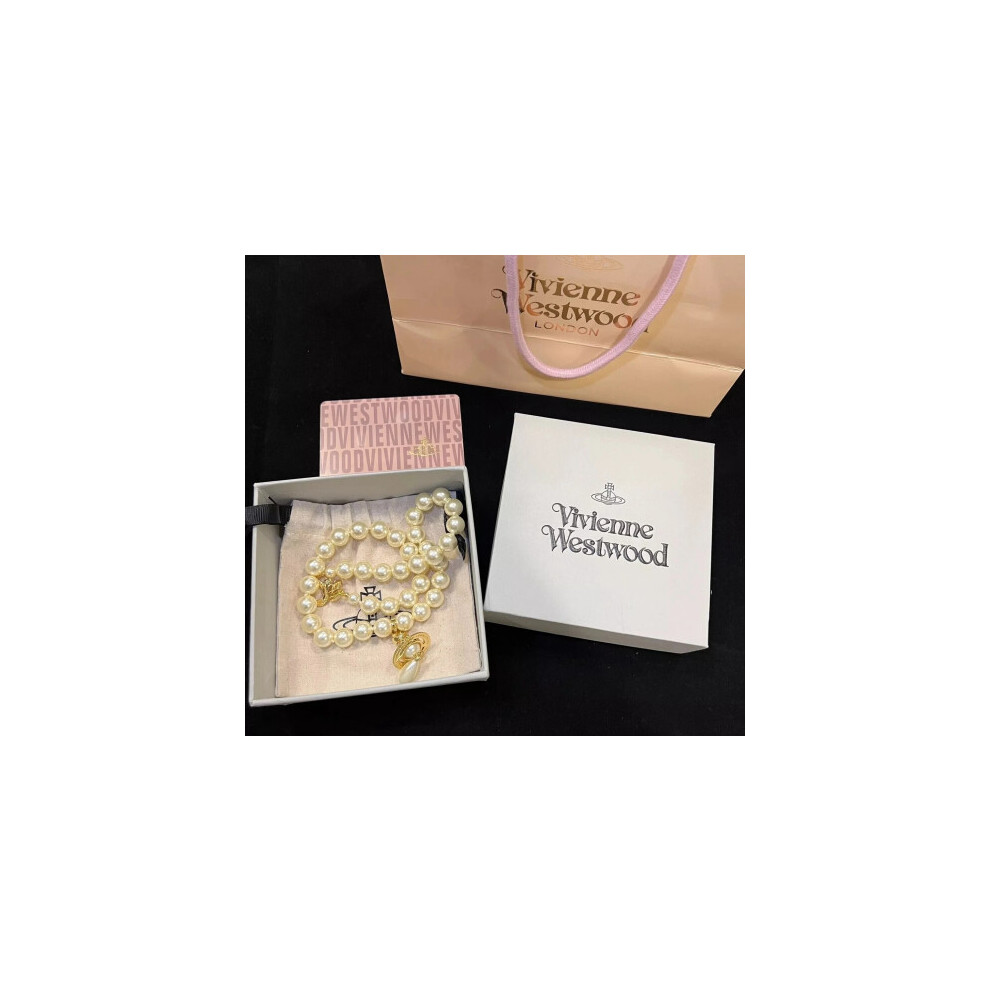 Vivienne Westwood Nana Drop Pearl Necklace Chocker Gold Tone With Box