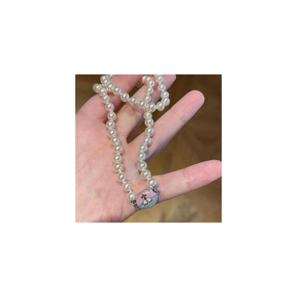 (White gold and pink enamel pearl necklace) Vivienne Westwood Enamel Pearl Necklace