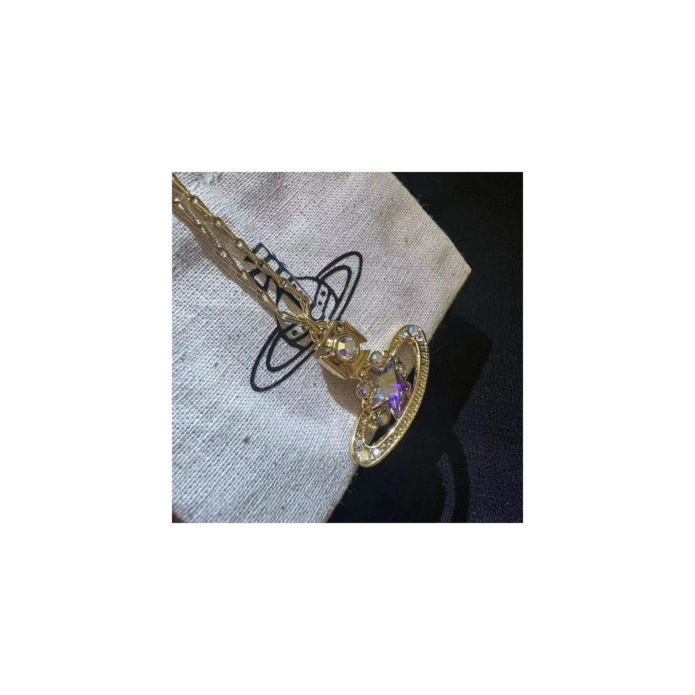 Vivienne Westwood iridescent rainbow star orb gold Tone necklace With box