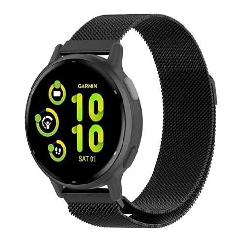 RoiYeel Strap Magnetic Compatible with Garmin Vivoactive 5, Stainless Steel Mesh Metal Watch Band for Garmin Vivoactive 5, Strong Magnet,Black