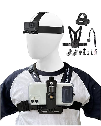 Phone Chest Mount Head Strap Accessories Kit - POV Phone Holder for Vlogging Video Compatible With iPhone 17 16 Pro Max Plus 15 14 13 - Hands Free Body Camera Mount for Immersive Fishing Recording