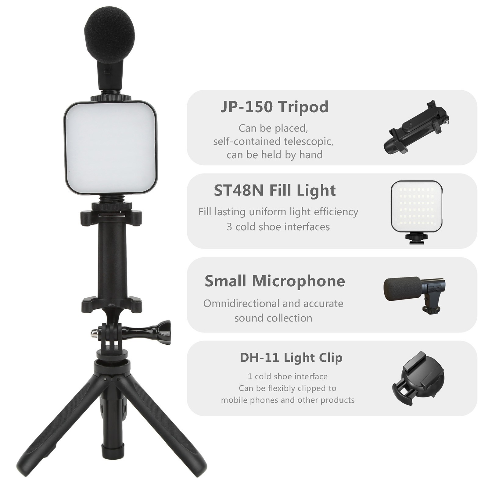 Smartphone Vlogging Kit Live Broadcast Phone Video Mic Kit With Fill Light T