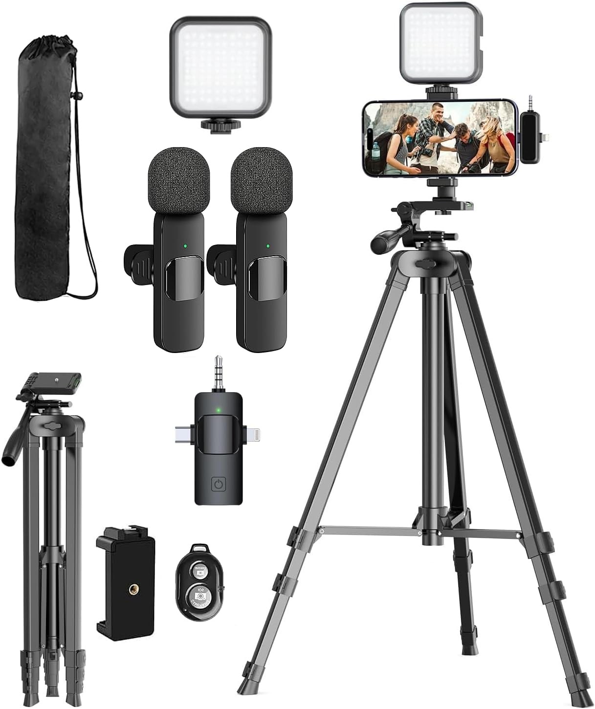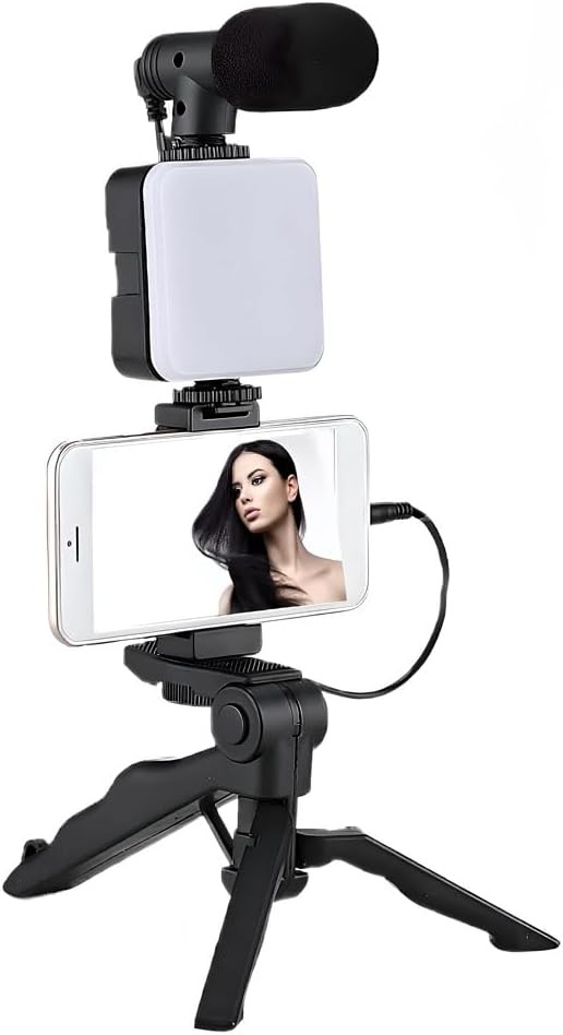 WIHFHGZ Smartphone Vlogging Kit with Microphone, Fill Light, Tripod, Phone Holder for Live Streaming, Filming, Content Creation