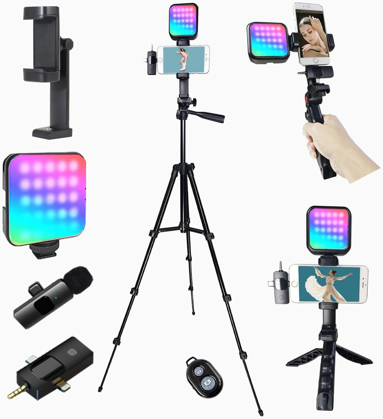 Peanutech Vlogging Kit, Vlogging Kit for iPhone Andriod Phone, Content Creator Equipment w/Lavalier Mic/RGB Light/Remote/Extendable Tripod