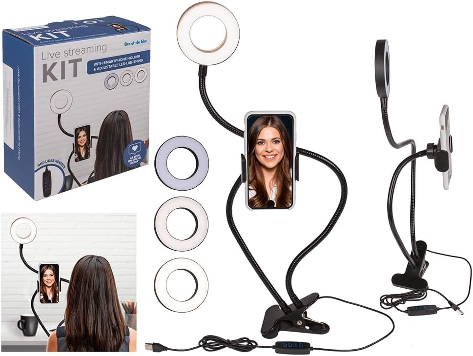 Live Streaming & Vlogging Kit, with Mobile Phone Holder & LED Lighting, Made of