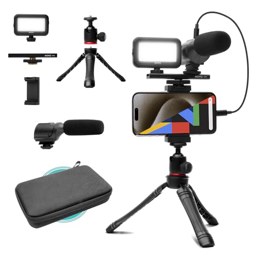 Movo uVlogger- Android/USB-C/iPhone 15 Compatible Vlogging Kit: Phone Tripod, Phone Mount, LED Light, Shotgun Microphone - Youtube Starter and Content Creator Kit
