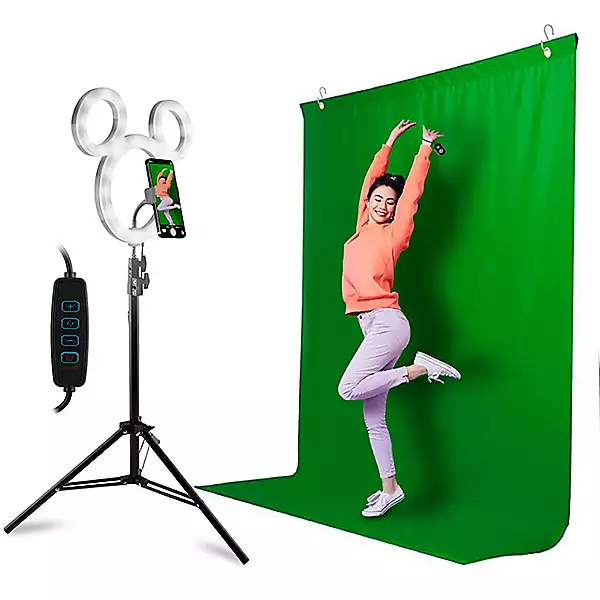 Disney Mickey Mouse Vlogging Studio Kit Selfie Ring Light Tripod Green Screen