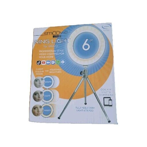 Smoovie 6” Adjustable LED Selfie Ring Light For Phone Live Stream Vlogging kit