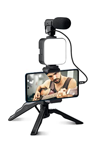 XQISIT Vlogging Kit, Smartphone Tripod Microphone, LED Light & HD Mic
