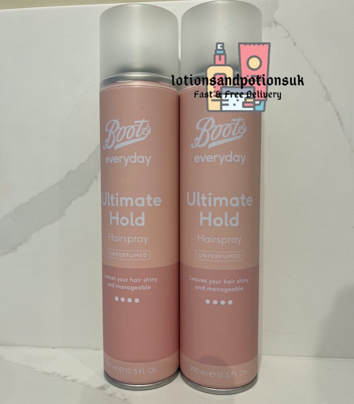 2 X Boots Everyday Unperfumed Hairspray ULTIMATE Hold 300ml