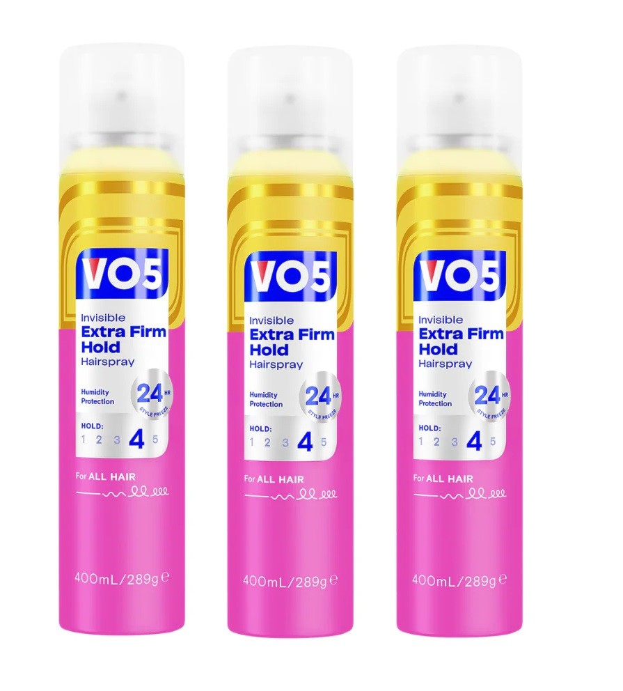 3 x VO5 Invisible Extra Firm Hold Hairspray 24H Weatherproof Styling 400ml
