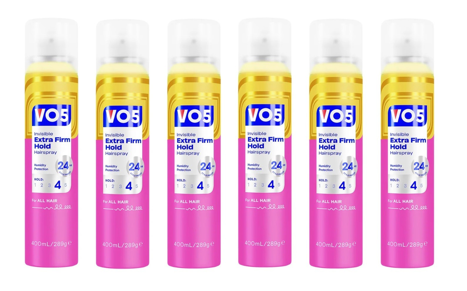 6 x VO5 Invisible Extra Firm Hold Hairspray 24H Weatherproof Styling 400ml