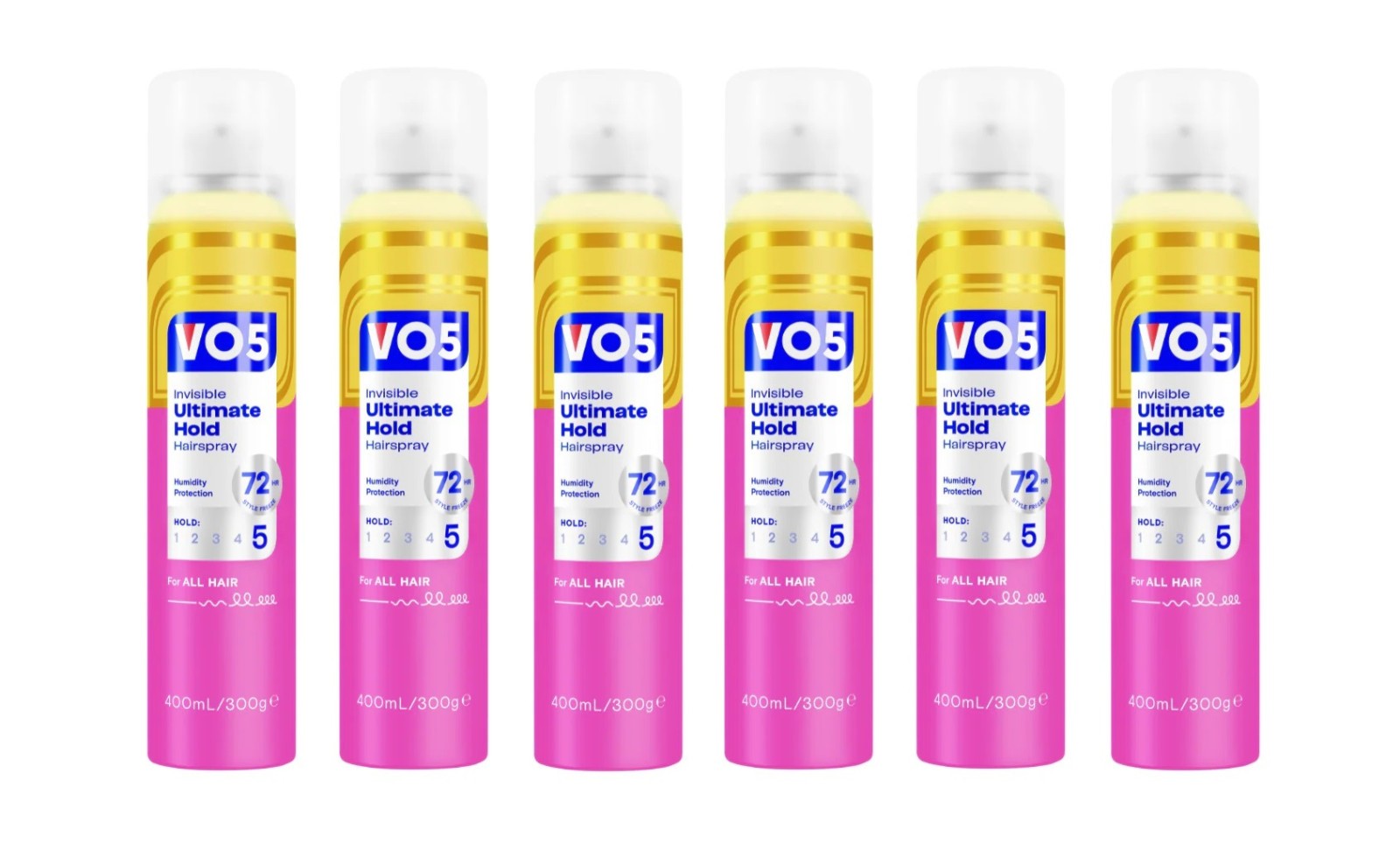 6 x VO5 Invisible Ultimate Hold HairSpray 72H Weatherproof Care Styling 400ml
