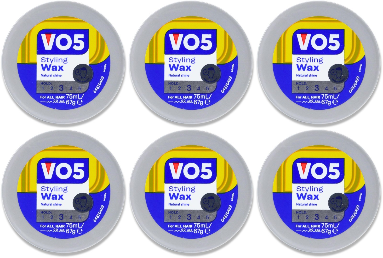 VO5 Styling Wax Natural Shine Hold Level 3 For All Hair 75ml - 6 Packs