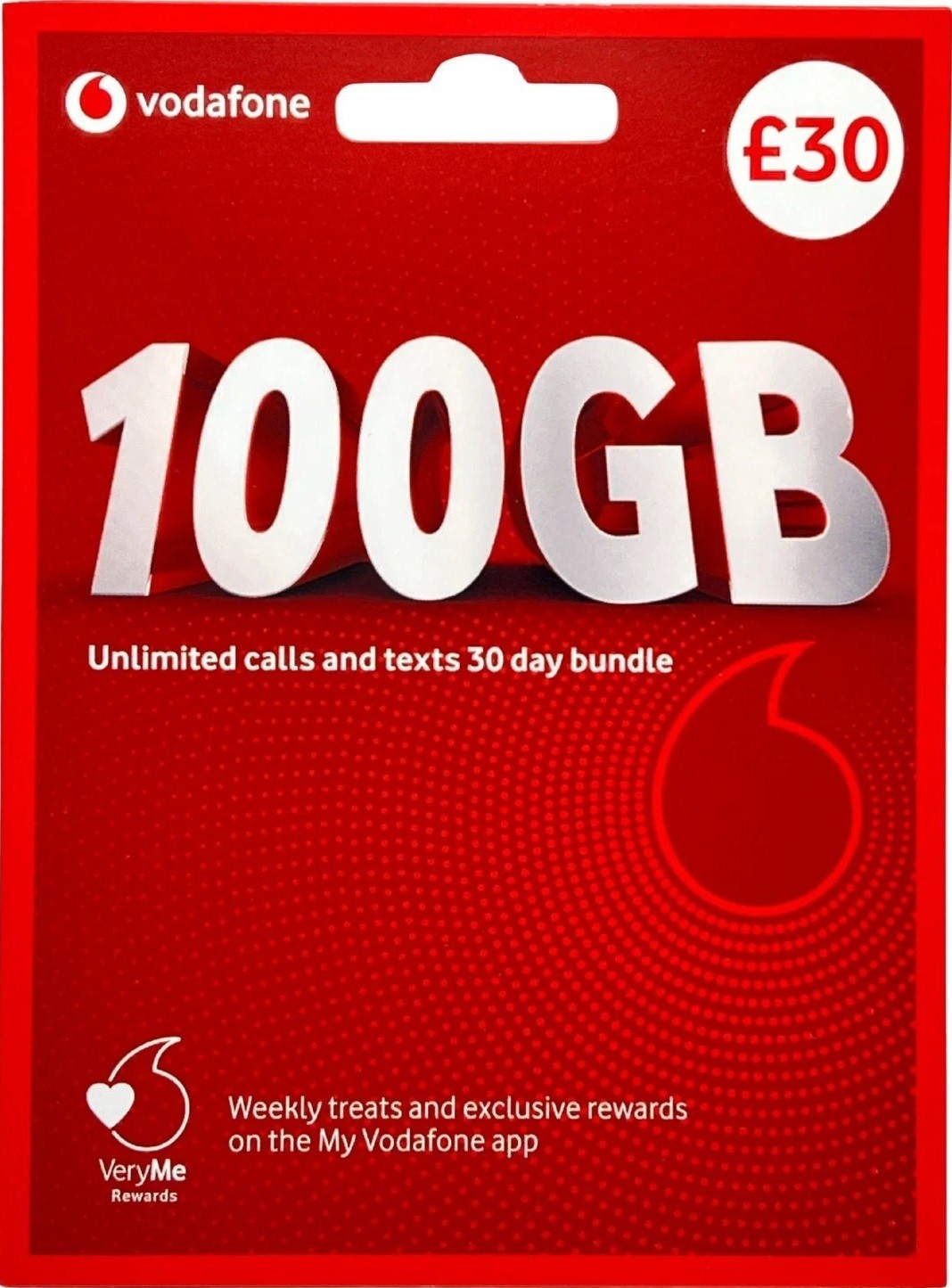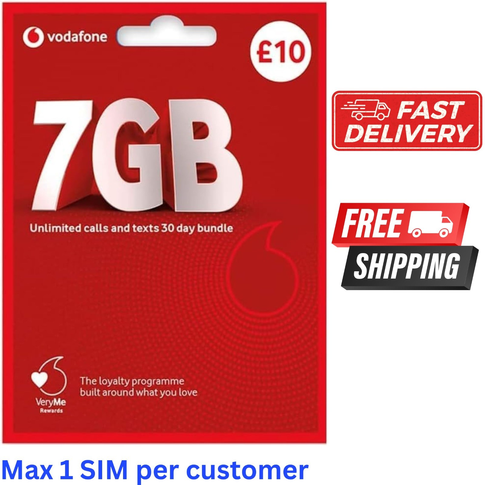 Vodafone 30 Bundle UK SIM Card Pay As You Go Pack , Vodaphone 3in1 SIM