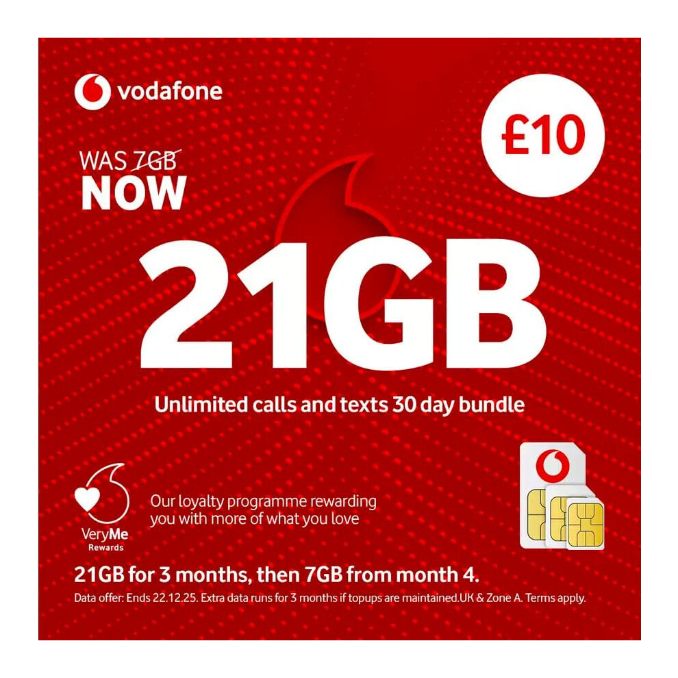 Vodafone Pay As You Go SIM Card, Unlimited Calls and Texts, 30 Day Bundle (10)