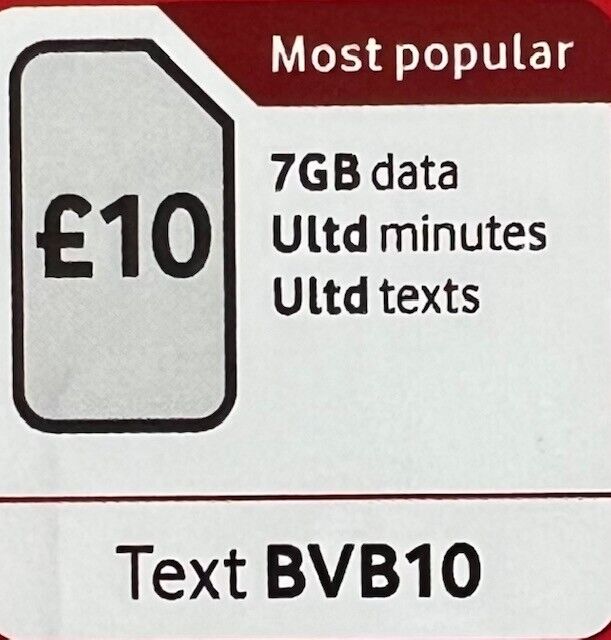 BRAND NEW Vodafone SIM card pay as you go £10 for 7GB