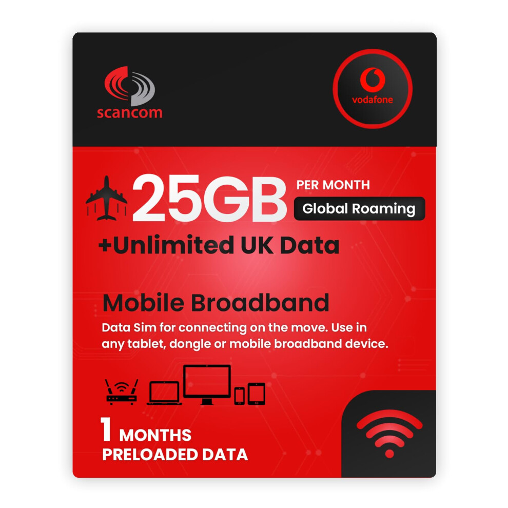 Vodafone 25GB Global Roaming Data Sim - 25GB Roaming Data in Europe & USA + Unlimited UK Data - Perfect for unlocked Phones and Wifi Routers - Activa