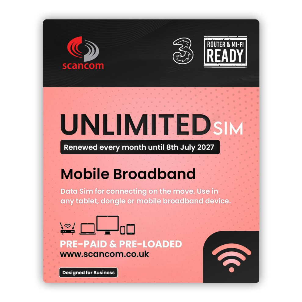 Three Unlimited Data SIM Card – for Portable WiFi, Routers & Phones – Preloaded Until July 2027 – Dual Network (Three & Vodafone) Stronger Coverage