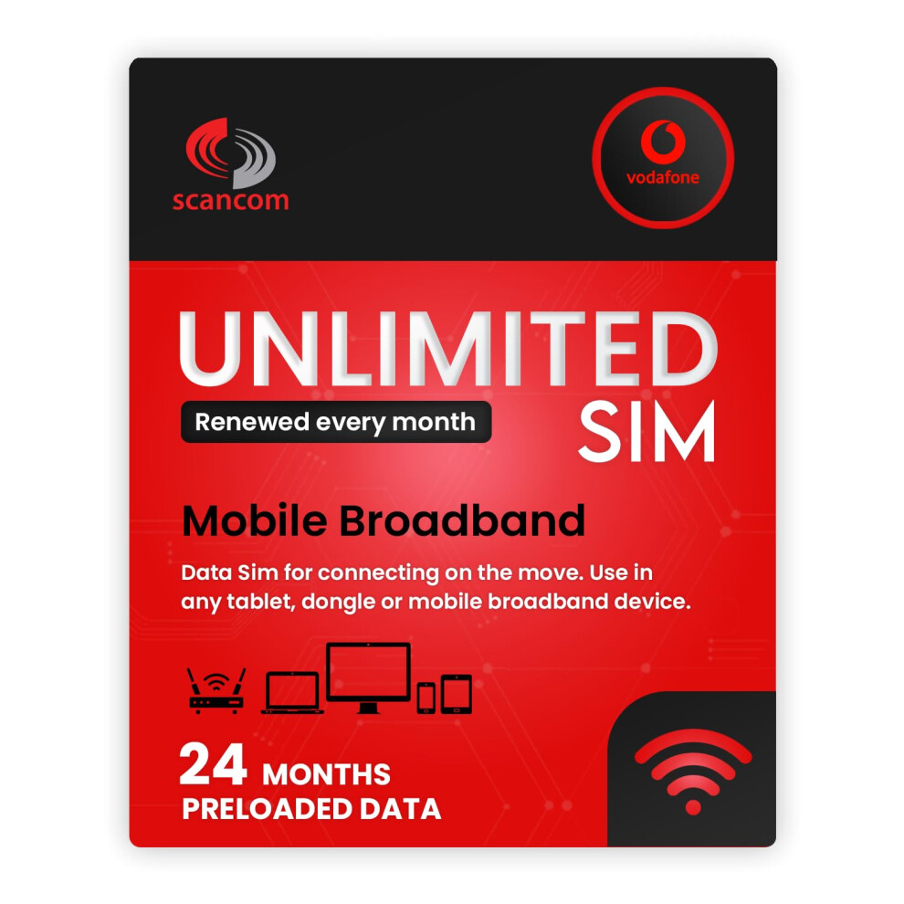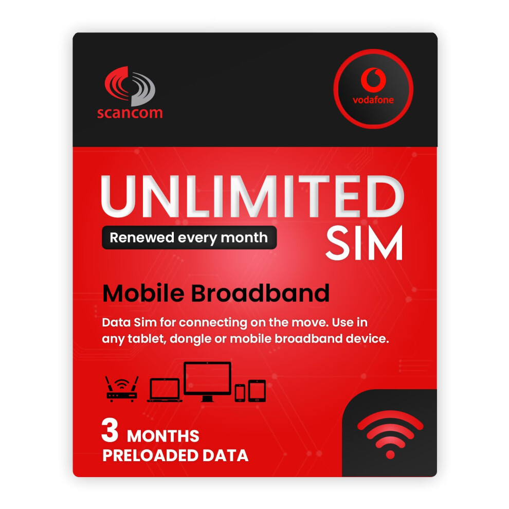 Vodafone Unlimited Data SIM - Preloaded for 6 Months - No Contract - Quick Activation Within 1 Working Day - Mobile Broadband for Routers, Tablets & Phones