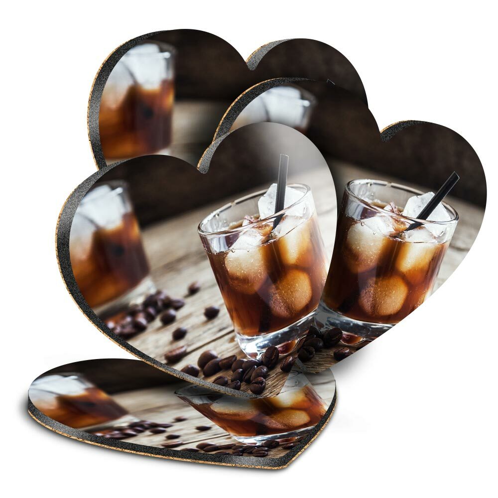 4x Heart MDF Coasters - Black Russian Cocktail Vodka Coffee #21241
