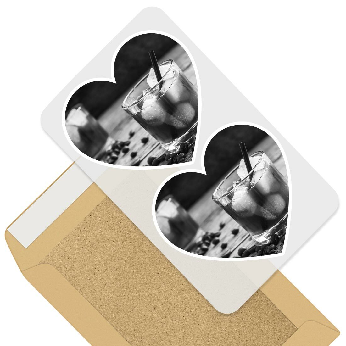 2 x Heart Stickers 7.5 cm - BW - Black Russian Cocktail Vodka Coffee #42582