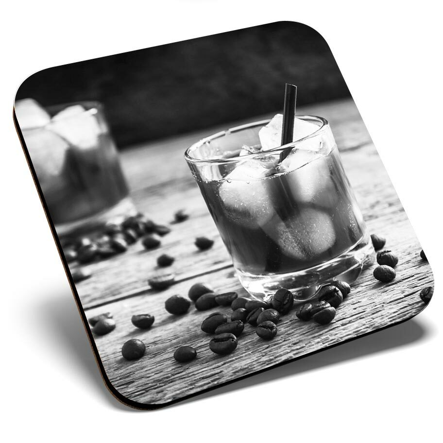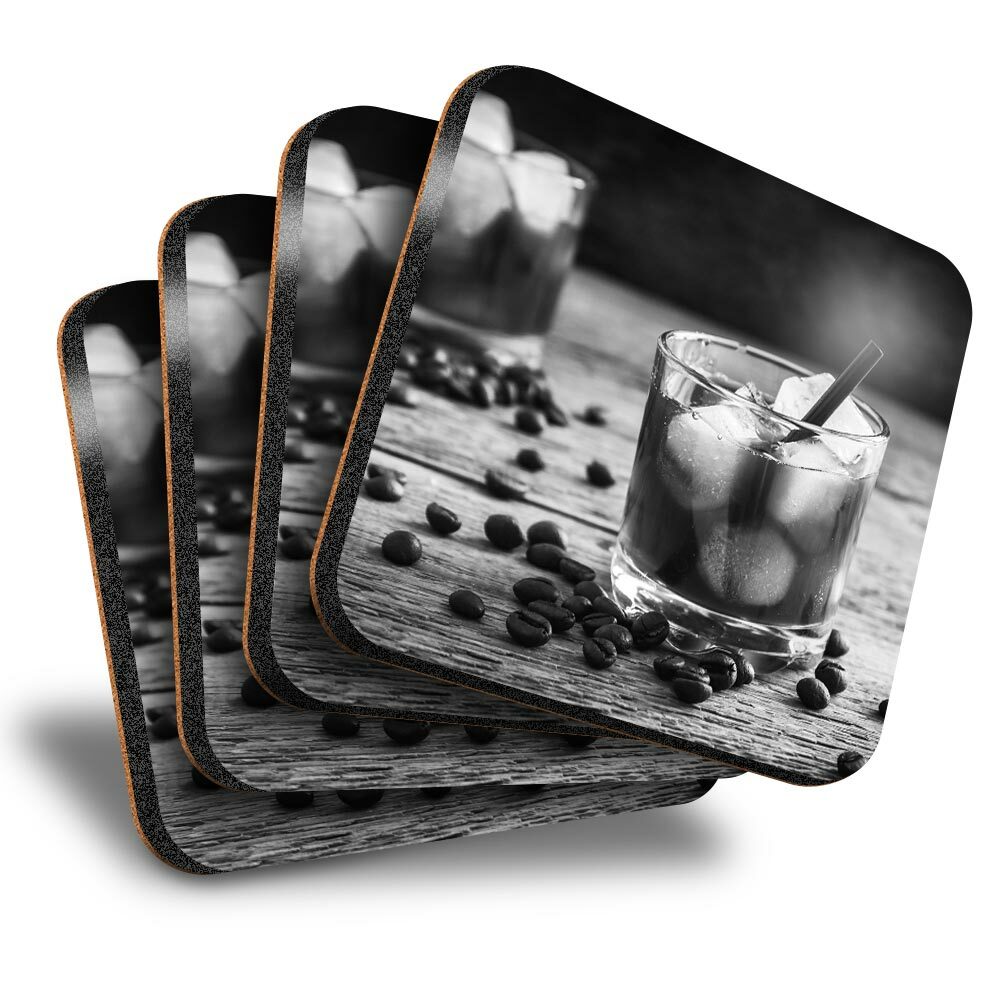Set of 4 Square Coasters - BW - Black Russian Cocktail Vodka Coffee #42582