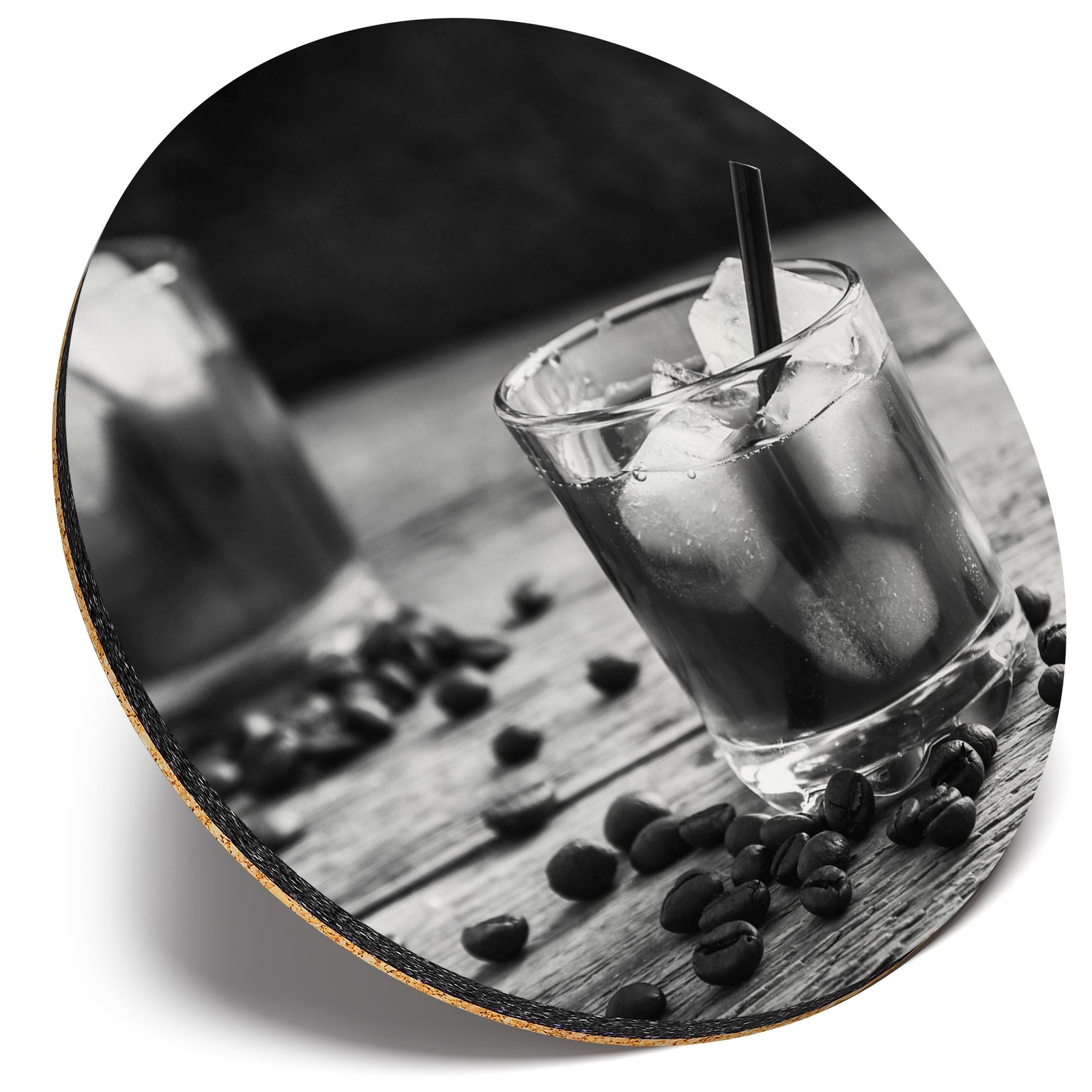 Round Single Coaster - BW - Black Russian Cocktail Vodka Coffee #42582