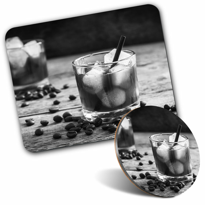 Mouse Mat & Coaster Set - BW - Black Russian Cocktail Vodka Coffee #42582