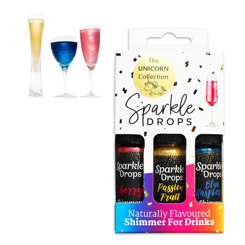 Sparkle Drops Unicorn Drinks Shimmer - Flavoured Drink Shimmer For Prosecco, Sparkling Wine, Gin, Vodka And Cocktails (30ml - 3 pack)