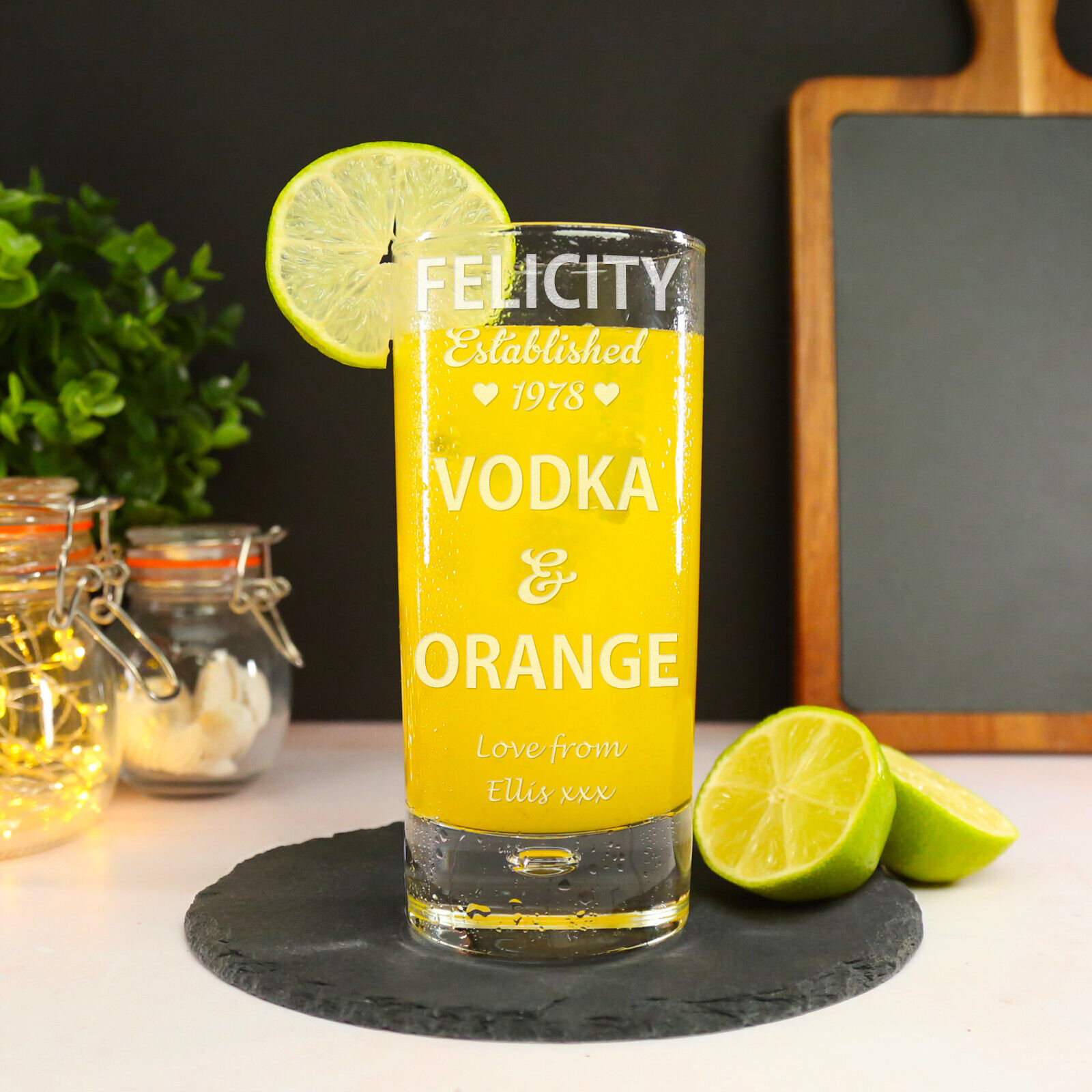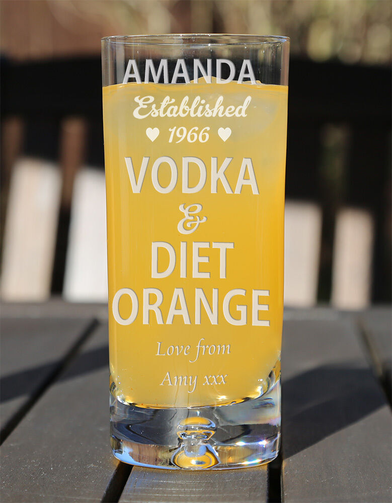 Personalised Engraved Boxed Vodka & Orange Glass Birthday Xmas Gift Est. Heart