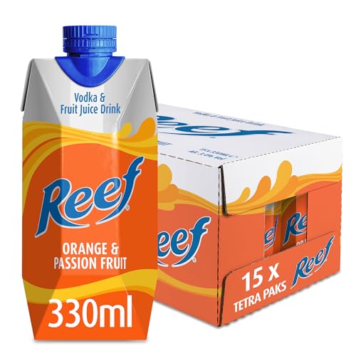 Reef Drink | Still Alcopop | 15 x 330ml Cartons | 3.4% ABV | Orange & Passion Fruit | Vodka And Fruit Juice Drink | Ready To Drink | On The Go Premixed Alcoholic Drinks |