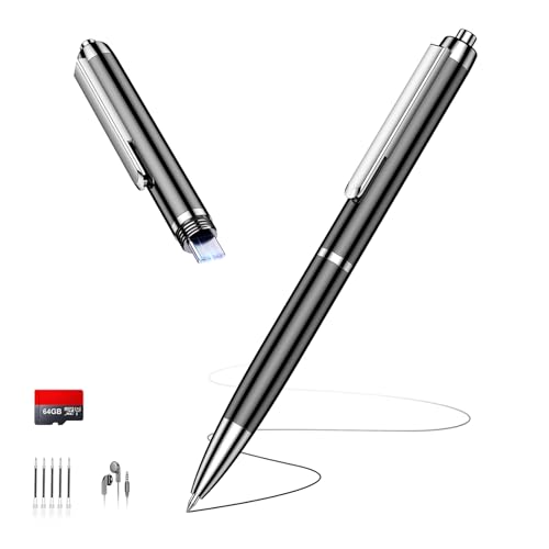 Dursilre 64 GB recording pen, HD voice recorder pen with intelligent noise-reducing device, can be stored 768 hours file, MP3