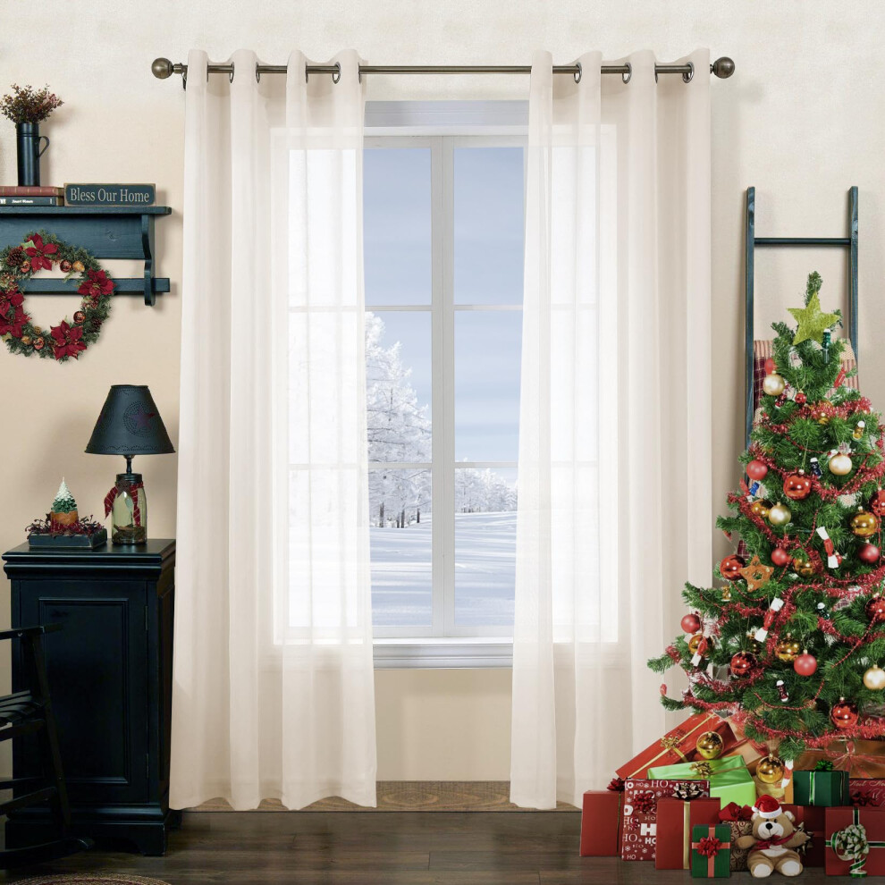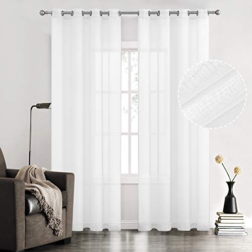July Joy White Semi Linen Look Sheer Curtains for Bedroom, Living Room Grommet Light Filtering Solid Voile Window Curtains, Set of 2 Panels, 52 x 84 inch