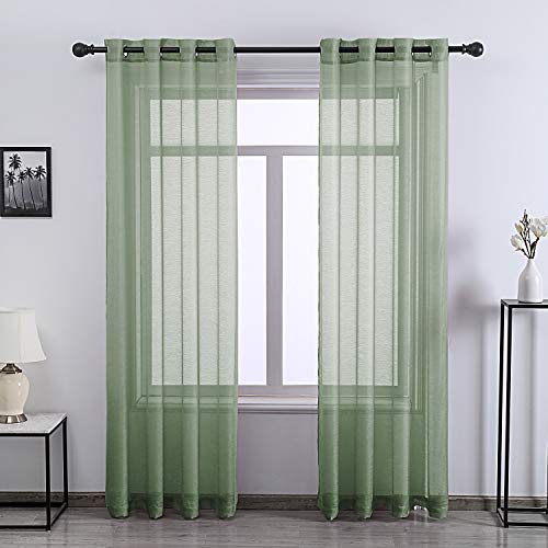 96 Inch Sheer Curtains Grommet 2 Panel Faux Linen Voile Drapes Textured Sheer Curtains for Living Room Bedroom,Sage
