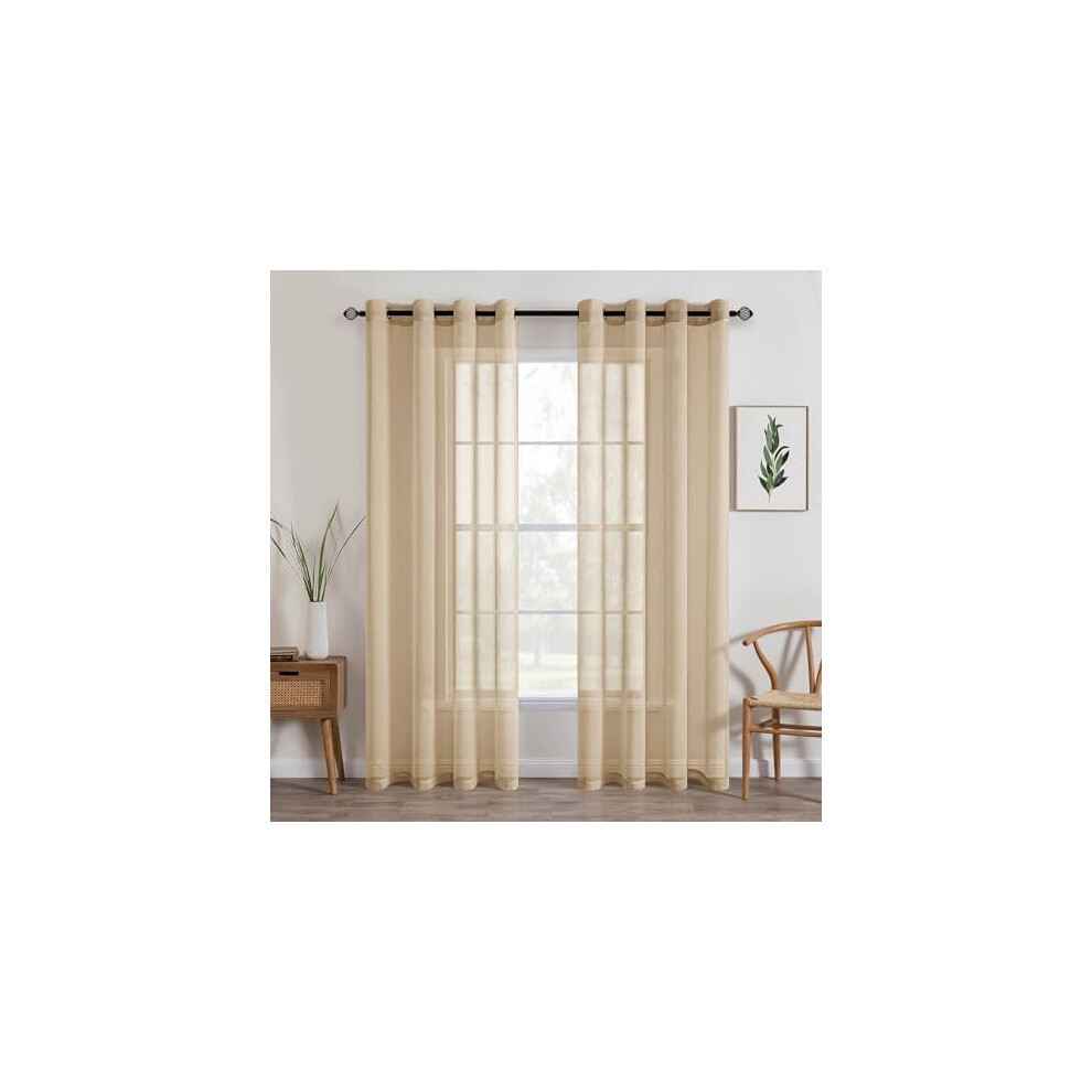 Melodieux 2 Panel Voile Net Curtains - Faux Linen Semi Sheer Curtains, Ring Top Drapes, Casual Solid Window Panels for Home Office, Living Room, Window, Patio - Beige, 55 x 89 inch drop (140 x 225cm)